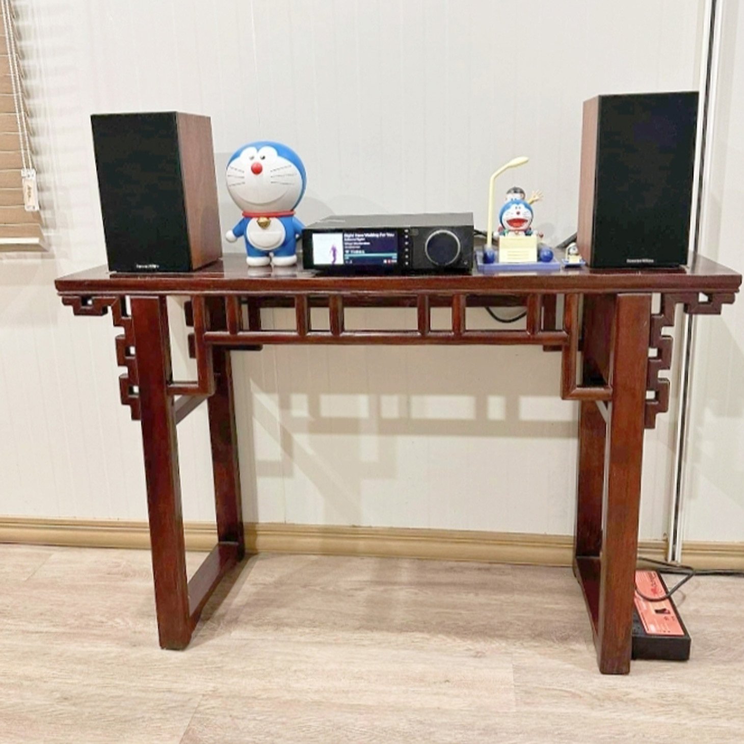 Classical Chinese style altar table with 50 cm top, can be used as working desk. Comes with geometry wood carvings, contemporary design.