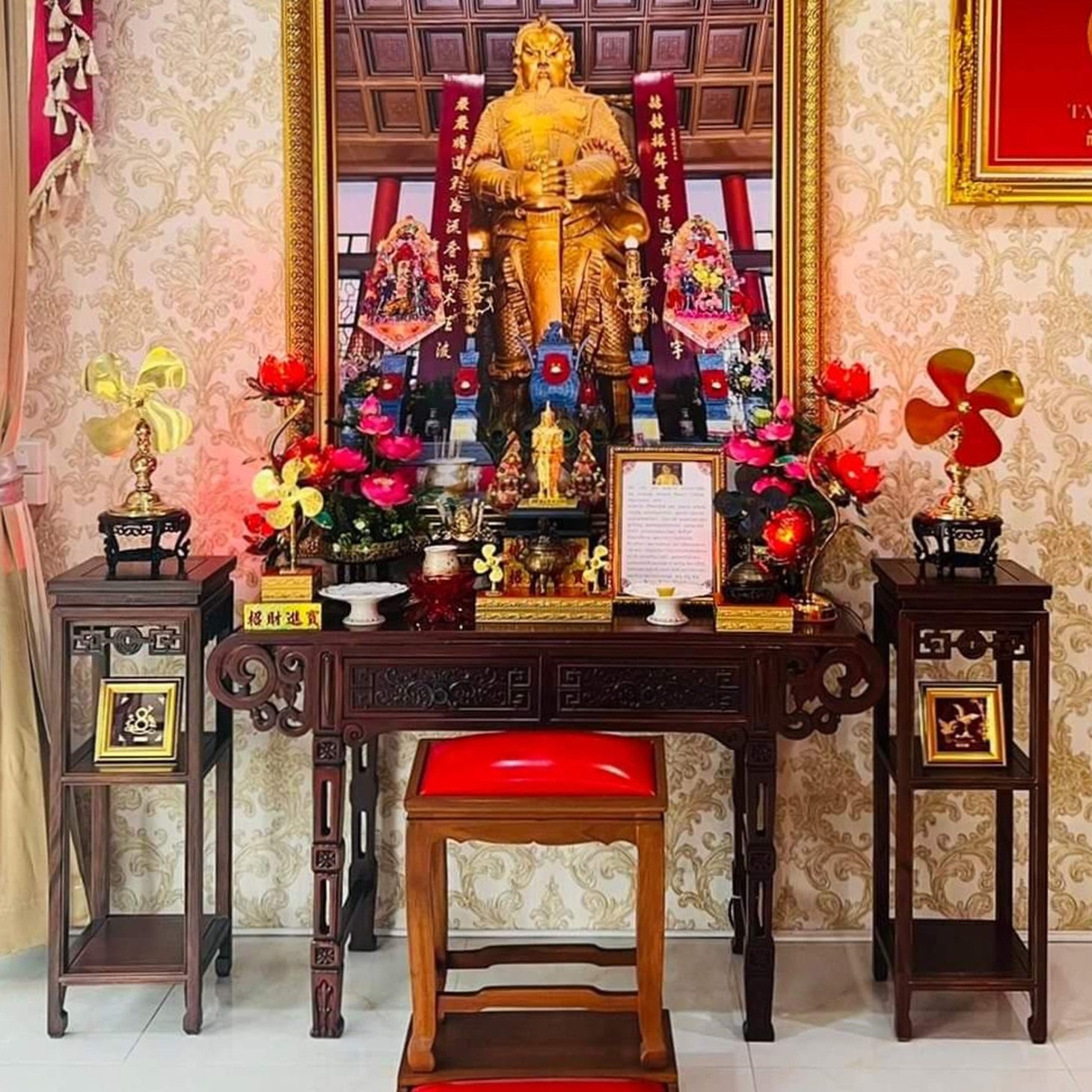 Classical Chinese style altar table with western-inspired flower pattern.